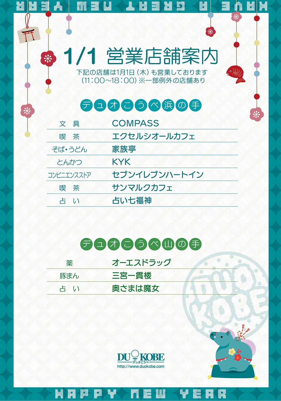 デュオこうべの年末年始の営業は以下の通りとなります。